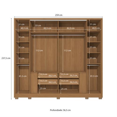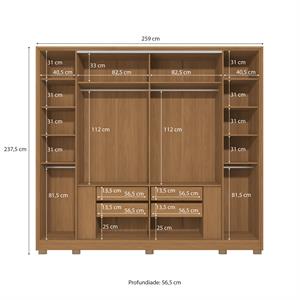 Roupeiro 6 portas | 4 gav c/ espelho e pés